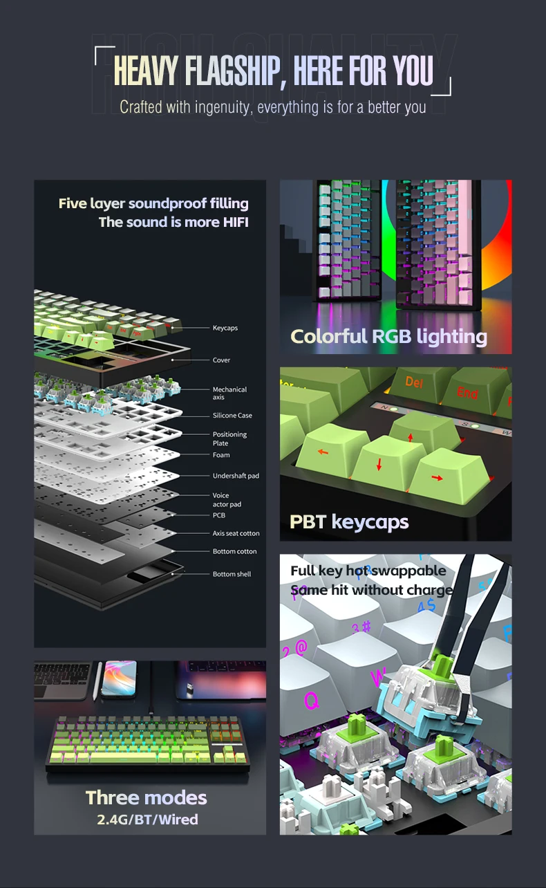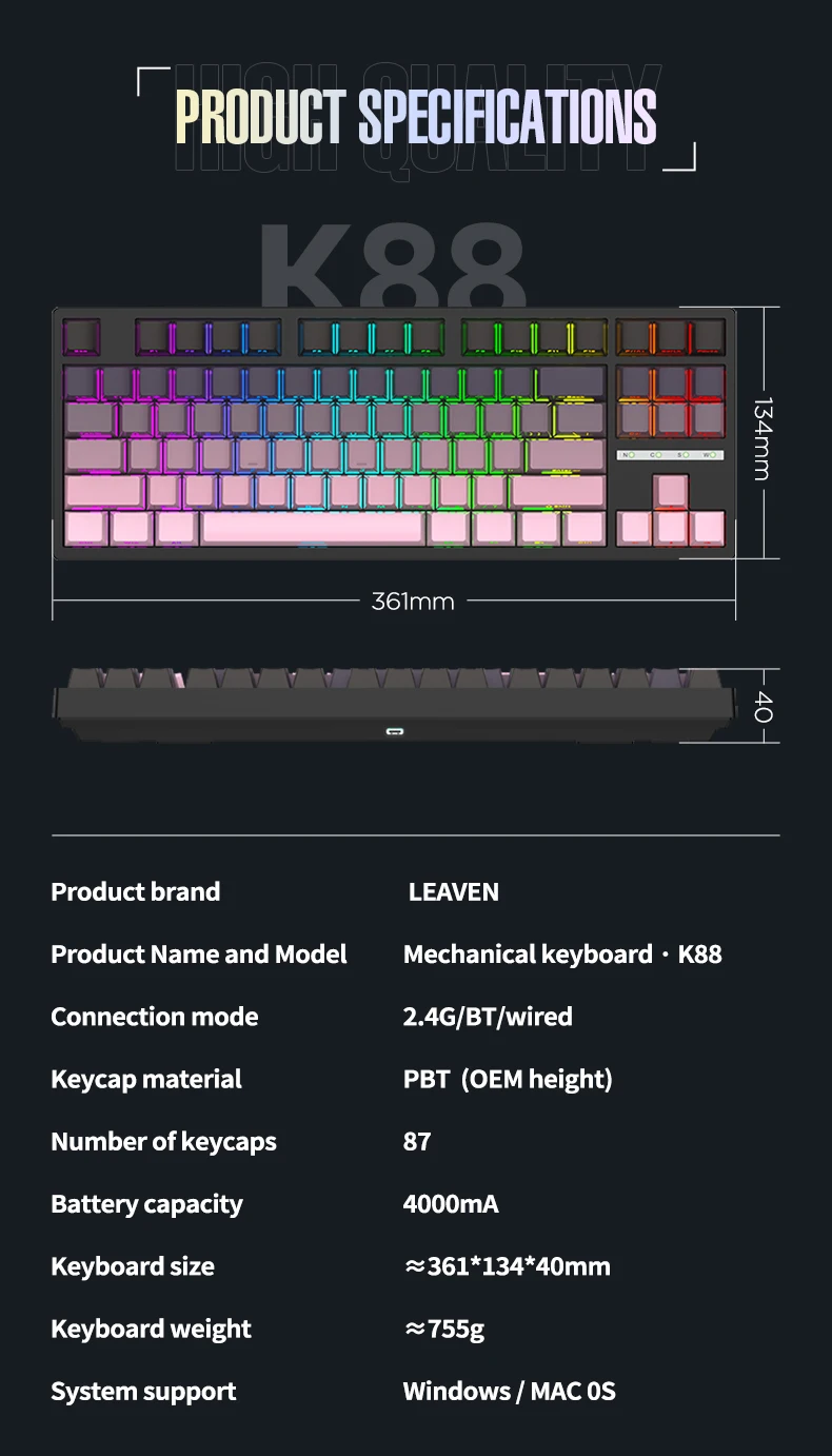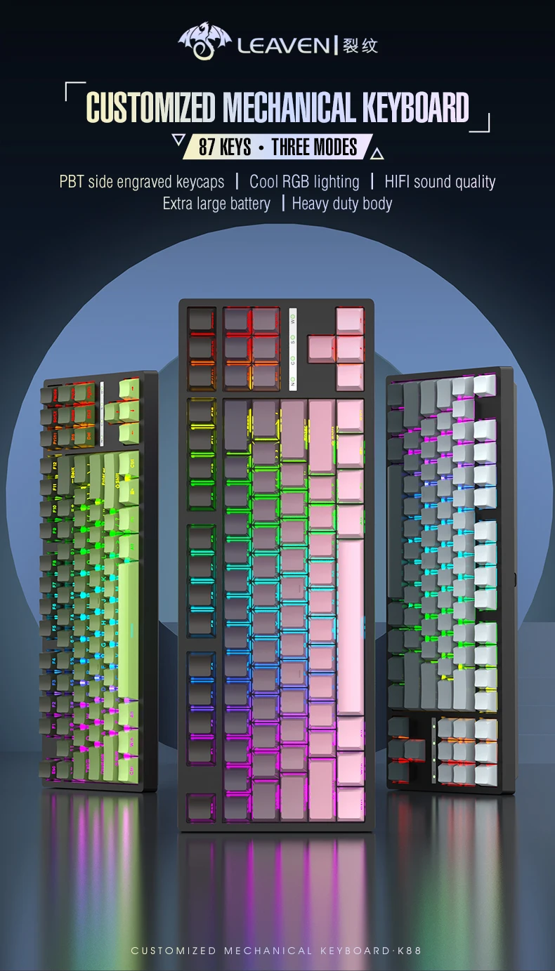 K88 Gamer Keyboard Full Key E-Sports Mechanical Keyboard for Computer & Laptop PBT Material Hot Swappable Gaming